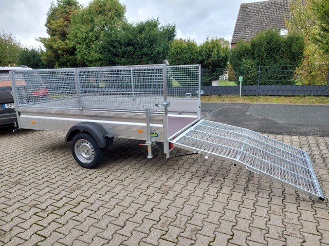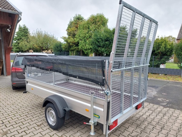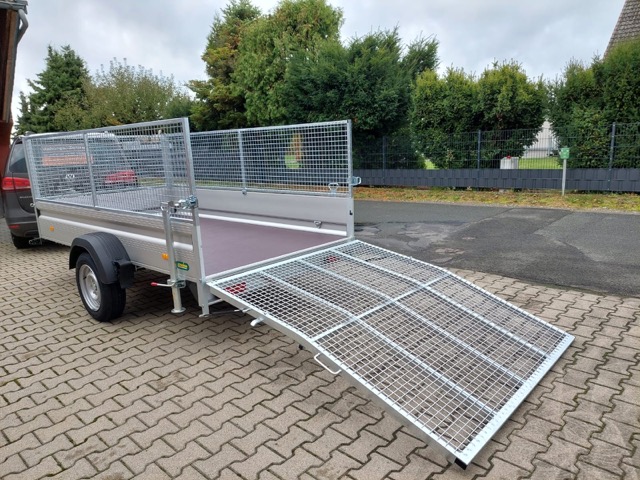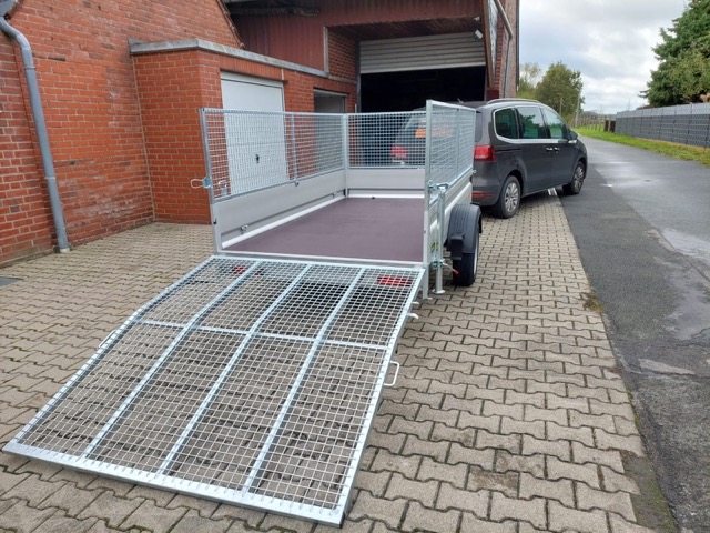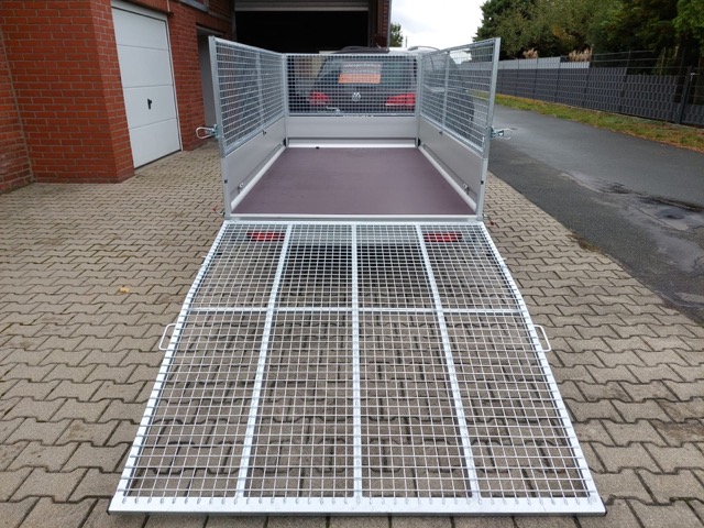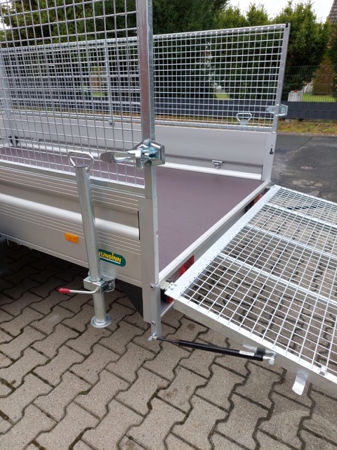 Gitterauffahrklappe Traglast: 500 kg mit Gasfederunterstützung über die gesamte Anhängerbreite.